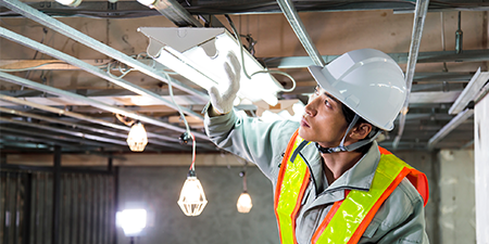 建物の形状や他の設備との取り合いを配慮し、効率かつ経済的な照明器具を設置する工事を行います。